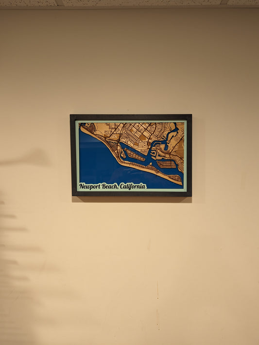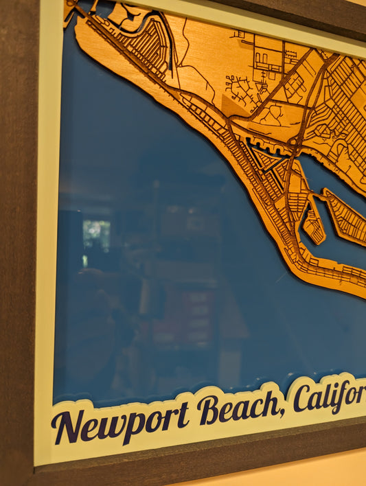 Newport Beach, CA 3D Layered Laser Map, 18x12, Framed