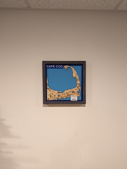 Cape Cod, MA 3D Layered Laser Map, 12x12, Framed