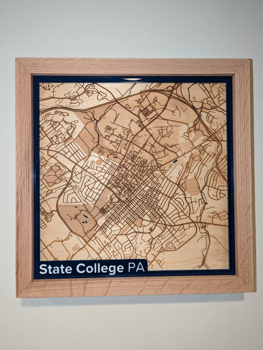 Penn State/State College, PA 3D Layered Laser Map, 12x12, Framed