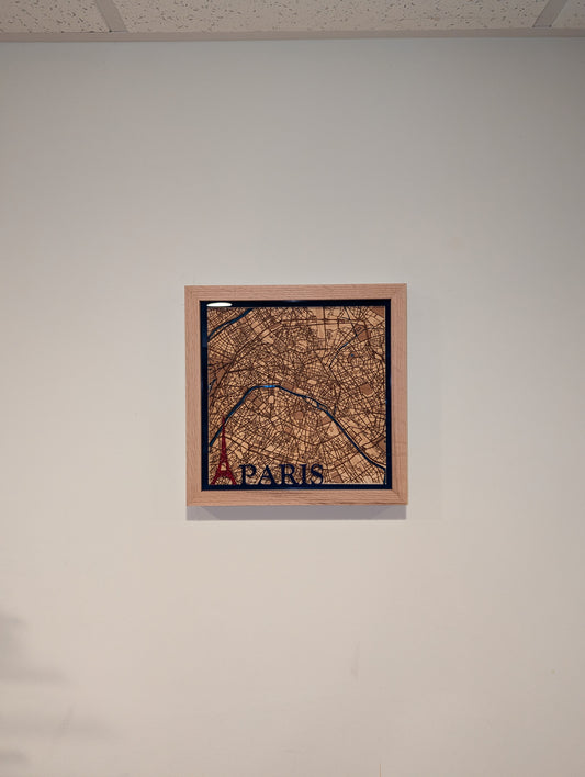Paris, France 3D Layered Laser Map, 12x12, Framed
