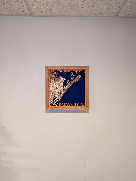 Ocean City, NJ 3D Layered Laser Map, 12x12, Framed