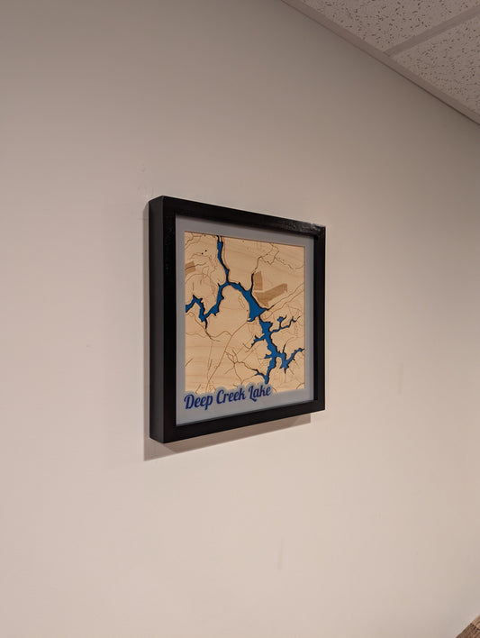 Deep Creek Lake, MD 3D Layered Laser Map, 12x12, Framed
