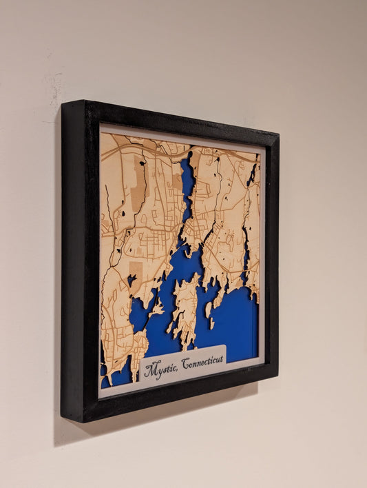 Mystic, CT 3D Layered Laser Map, 12x12, Framed