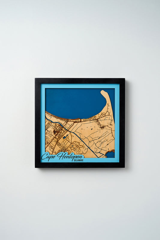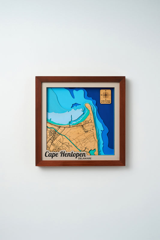 Lewes/Cape Henlopen State Park, DE 3D Layered Laser Map, 12x12, Framed