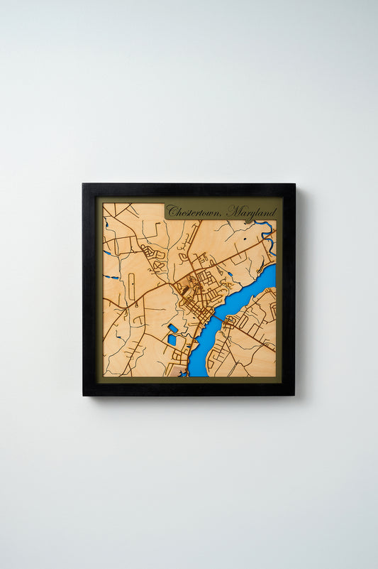Chestertown, MD 3D Layered Laser Map, 12x12, Framed