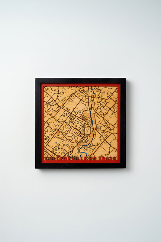 Collegeville, PA 3D Layered Laser Map, 12x12, Framed