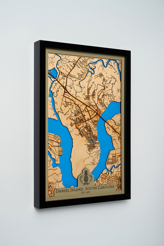Daniel Island, SC 3D Layered Laser Map, 12x18, Framed