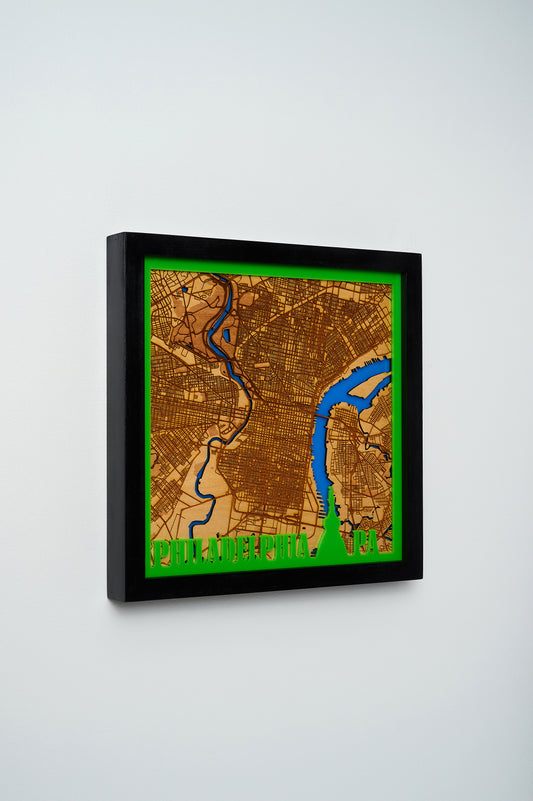 Philadelphia, PA 3D Layered Laser Map, 12x12, Framed