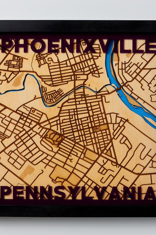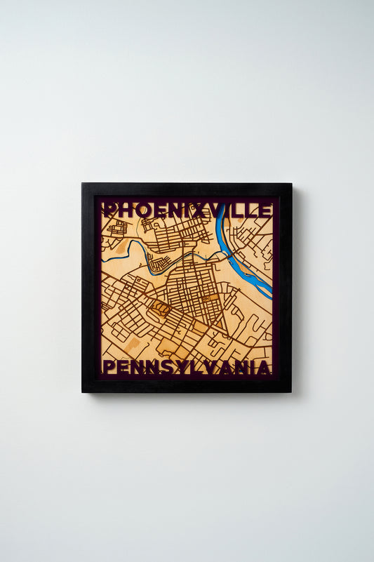 Phoenixville, PA 3D Layered Laser Map, 12x12, Framed